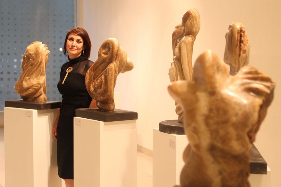 فنانة بدأت النحت بعد استشهاد ابنها تحديداً. الأم التي لم تعد قادرة على احتضان كائن حي، تحتضن الحجر وتتركه ينطق