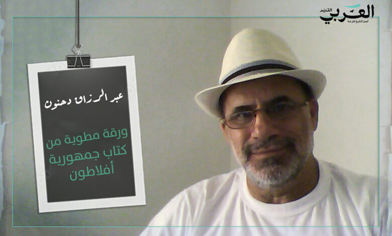 أبو النار وورقة مطوية من كتاب جمهورية أفلاطون